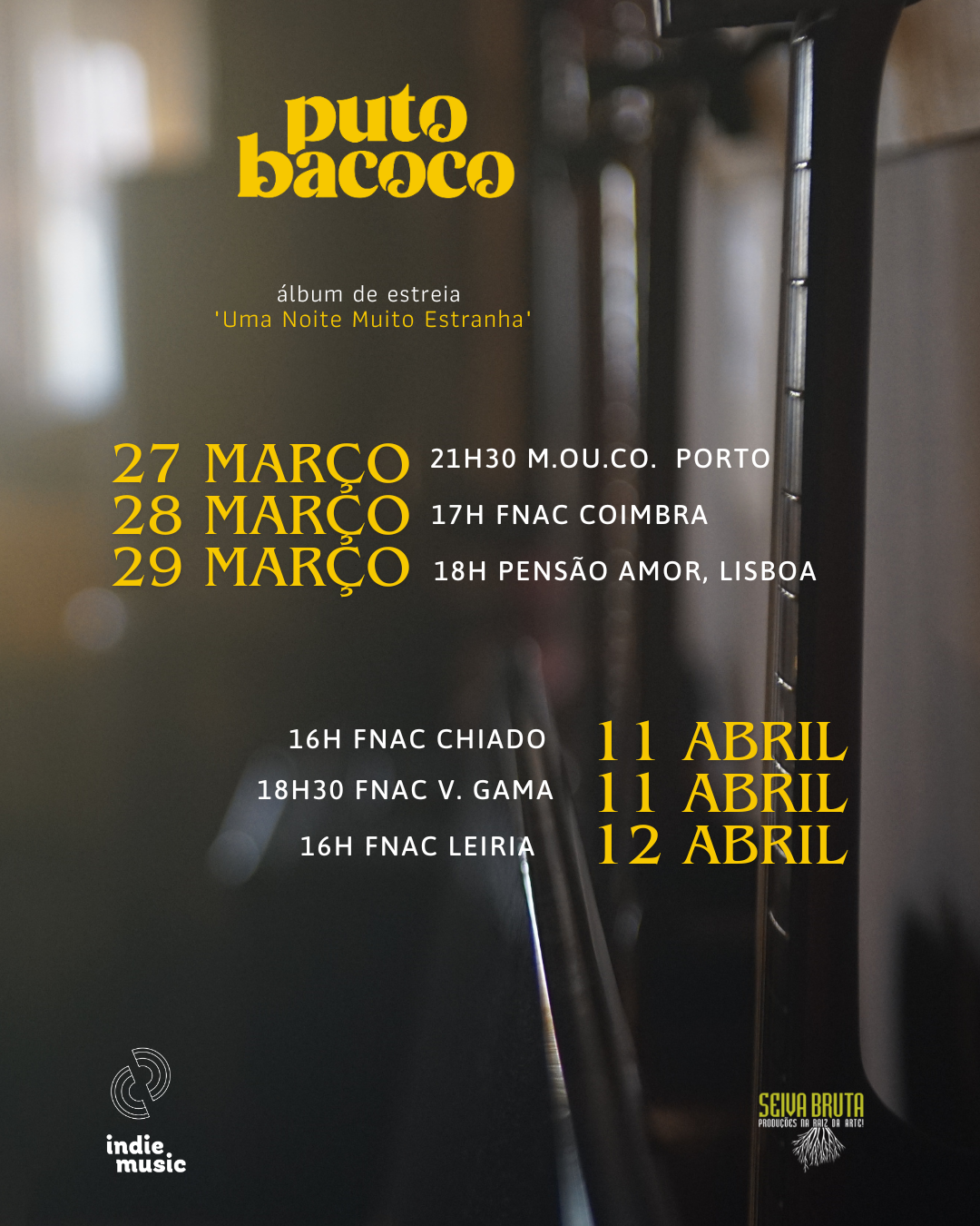 Os puto bacoco apresentam o seu álbum de estreia “Uma Noite Muito Estranha”, ao vivo na mítica sala do Porto, o espaço cultural M.ou.CO. no próximo dia 27 de março pelas 21h30.